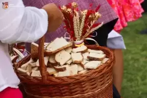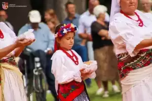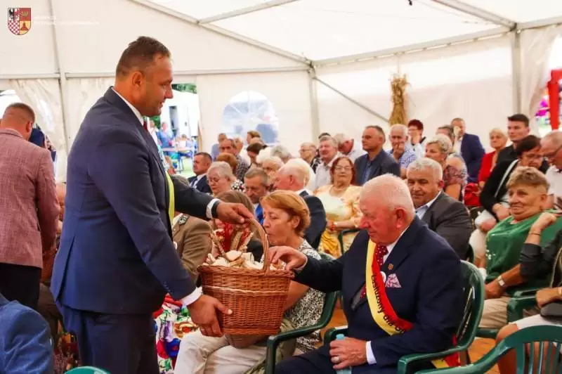 Następnie Wójt, Starostowie Dożynek oraz kilku wybranych gości zainaugurowali dożynki gminne polonezem odtańczonym wspólnie z ZPiT „Ziemia Legnicka”. Również ten sam Zespół poprowadził kolejno obrzęd dożynkowy, a także wystąpił z szerokim programem tanecznym. Podczas części oficjalnej odbyło się symboliczne krojenie chleba i rozdzielenie go wśród mieszkańców.