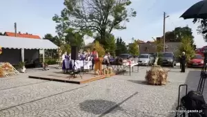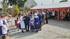 Jak na Święto Plonów przystało nie mogło się obyć bez obrzędu dożynkowego przygotowanego przez zespół ludowy „Cicha Woda” oraz obtańczenia wieńca.