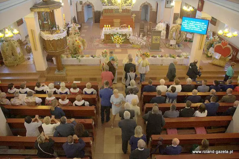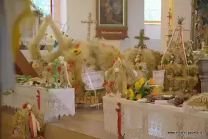 Uroczystość rozpoczęła się w miejscowym kościele p.w. Matki Bożej Anielskiej, gdzie w podziękowaniu za tegoroczne plony ks. prałat Edward Szajda modlił się w intencji rolników. W mszy brali udział również: proboszcz parafii p.w. św. Jana Chrzciciela w Piekarach ks. Marek Jodko oraz proboszcz parafii p.w. Podwyższenia Krzyża Świętego w Konarach ks. Andrzej Ćwik.
