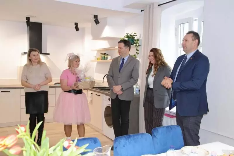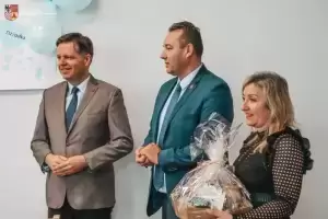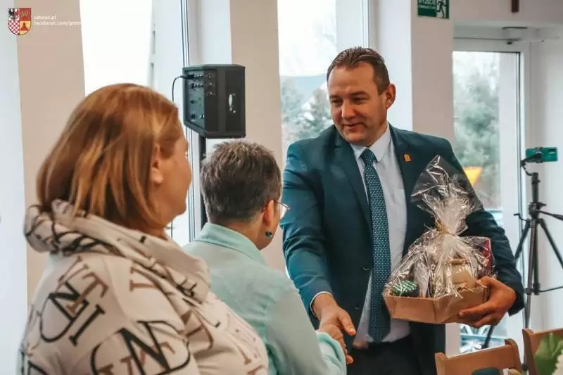 Wójt złożył najserdeczniejsze życzenia i przekazał na ręce seniorów kosze upominkowe zaopatrzone w naturalne produkty z Lokalnej Grupy Działania Szlakiem Granitu.