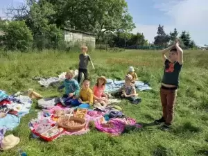 Nie zabrakło tego dnia oczywiście zabaw i gier ruchowych na świeżym powietrzu - słoneczko pięknie umilało dzieciom czas. Zmęczonych hasaniem, pani szkolna bibliotekarka zaprosiła na „Czytanie pod chmurką”. Rodzice zaś zadbali o pyszności - słodkości.