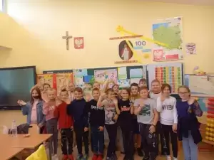 Najmłodsi uczniowie z kl. 0-3 rozpoczęli ten dzień od spotkania ze swoimi wychowawcami w klasach. Były życzenia. Następnie wspólnie obejrzeli film pt. Prawa Dziecka i odbyli pogadankę w tym temacie.