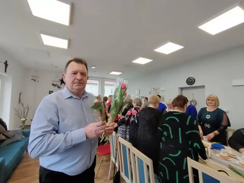 Z okazji Dnia Kobiet, wójt Gminy Udanin Wojciech Płaziuk oraz sekretarz Andrzej Bielski, odwiedzili wczoraj Klub Seniora w Konarach.