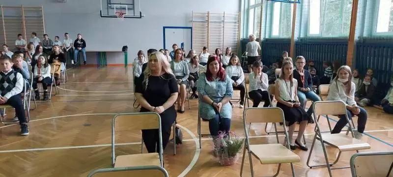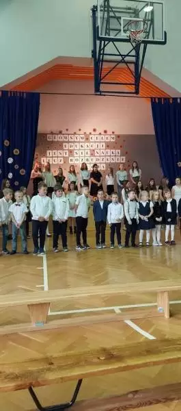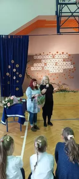 Na początku uroczystości dyrektor Bożena Basa oraz przybyli goście skierowali do zebranych życzenia oraz wiele ciepłych słów. Był także bukiet kwiatów od pana wójta i smaczny tort ufundowany przez Radę Rodziców.