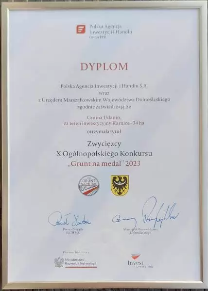 Konkurs został zorganizowany przez urzędy marszałkowskie oraz Polską Agencję Inwestycji i Handlu (PAIH), pod patronatem Ministerstwa Rozwoju i Technologii. Zgłoszony przez Gminę Udanin teren inwestycyjny Karnice - 34ha, otrzymał tytuł zwycięzcy konkursu w województwie dolnośląskim.