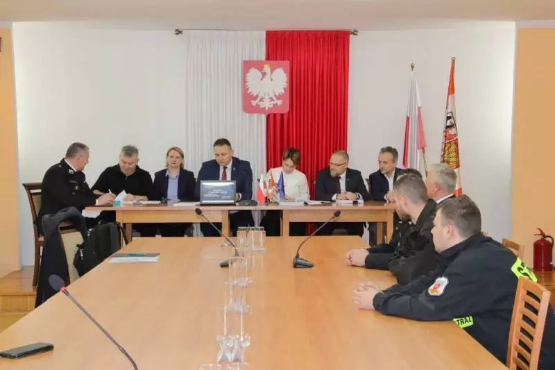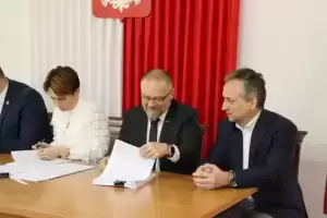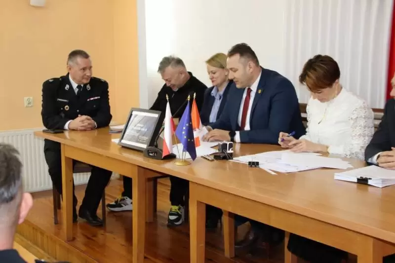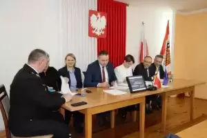 Wójt Gminy Udanin Wojciech Płaziuk, Zastępca Skarbnika Jowita Olejarz wraz z Pełnomocnikiem spółki TURPIS sp. z o.o., sp.k Markiem Czajdą, podpisali umowy przedmiotem których jest budowa i przebudowa remiz OSP.
