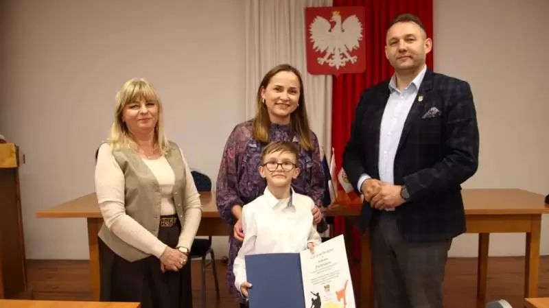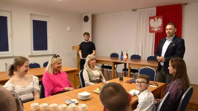 Podczas uroczystego spotkania w sali narad Urzędu Gminy Udanin, 14 kwietnia 2025 r. Wójt Wojciech Płaziuk wraz z Skarbnikiem Bożeną Trawińską zawarli umowy stypendialne za osiągnięcia sportowe w roku 2024.