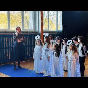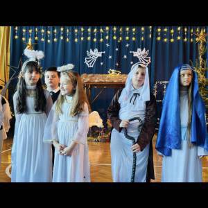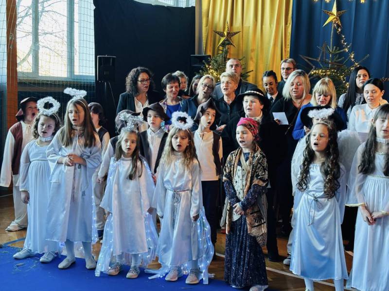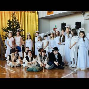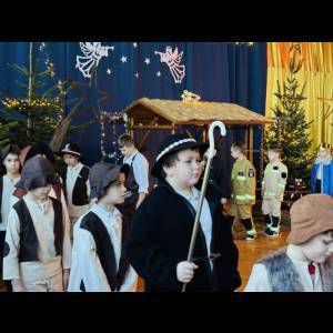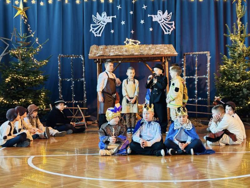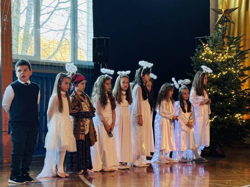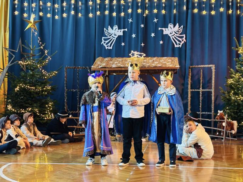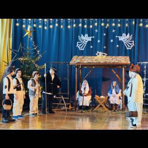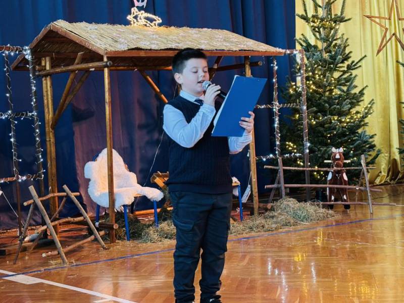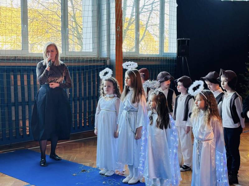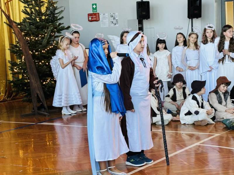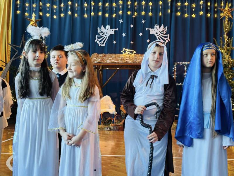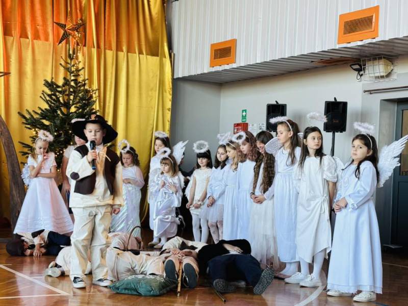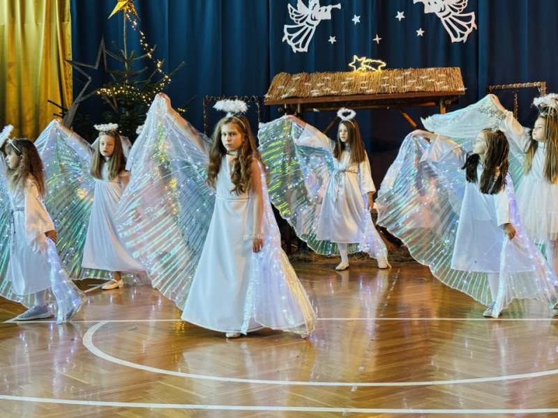 Przepiękne przedstawienie przygotowały dzieci z klas 0–III, które wprowadziły wszystkich w świąteczny nastrój. Mali artyści zachwycili publiczność swoim zaangażowaniem, grą aktorską oraz śpiewem, a całość była pełna ciepła, radości i bożonarodzeniowej magii.