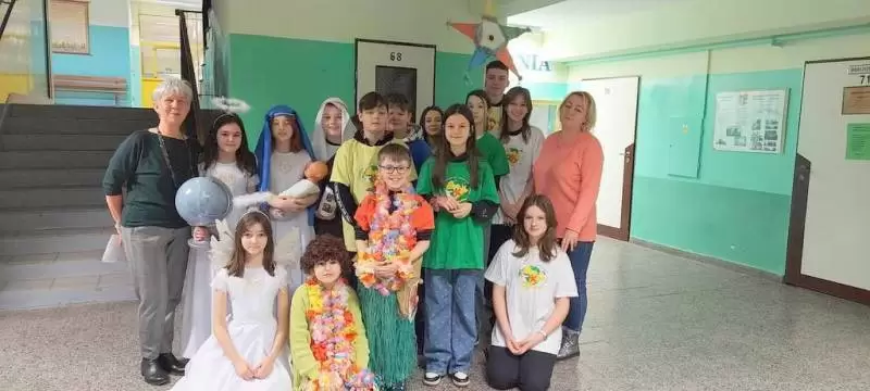 Odwiedzając poszczególne klasy, obwieszczali wszystkim dzieciom fakt Bożego Narodzenia i w piękny sposób opowiadali, jak żyje się rówieśnikom w Oceanii. Przy tej okazji zbierano datki do puszki, które w tym roku przeznaczone są na pomoc dzieciom z Papui-Nowej Gwinei żyjącym w biedzie i niemającym dostępu do nauki.