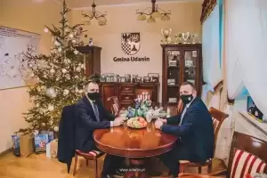 Po odbiorze drogi, wójt gminy Udanin Wojciech Płaziuk oraz dyrektor oddziału terenowego Krajowego Ośrodka Wsparcia Rolnictwa we Wrocławiu Tomasz Krzeszowiec spotkali się, aby porozmawiać o dalszej współpracy między gminą, a KOWR.