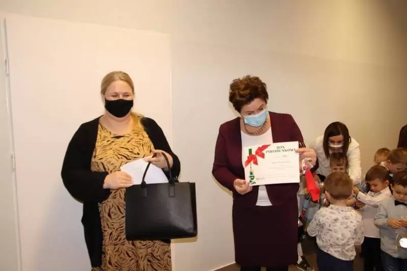 W podziękowaniu za pięknie zaśpiewaną piosenkę, wójt wręczył przedszkolaczkom indywidualne prezenty oraz na ręce wychowawczyni pakiety z okazji otwarcia. Pani Ewa oraz Pani Patrycja otrzymały od Rady Rodziców, którą reprezentuje przewodnicząca Pani Justyna Olkiewicz, bon upominkowy w kwocie 200 zł.