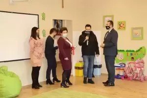 26 stycznia, wójt gminy Udanin Wojciech Płaziuk, wraz z pracownikami odpowiedzialnymi za realizację zadania, dyrektor szkoły Bożena Basa wraz z wychowawczyniami i przedszkolakami, uroczyście otworzyli „Kolorowe Przedszkole”.