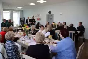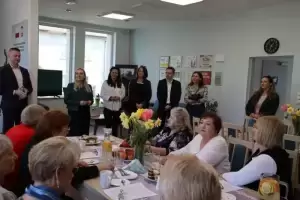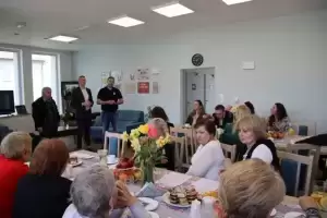 Wizytację rozpoczęto od wizyty w Klubie Seniora, gdzie komisja została przywitana pięknym śpiewem, pysznym ciastem i napojami. Podczas spotkania została przedstawiona multimedialna prezentacja działań Sołectwa.