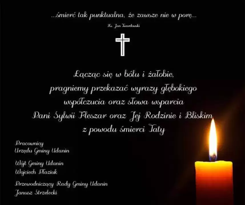 Łącząc się w bólu i w żałobie, pragniemy przekazać wyrazy głębokiego współczucia oraz słowa wsparcia Pani Sylwii Fleszar.