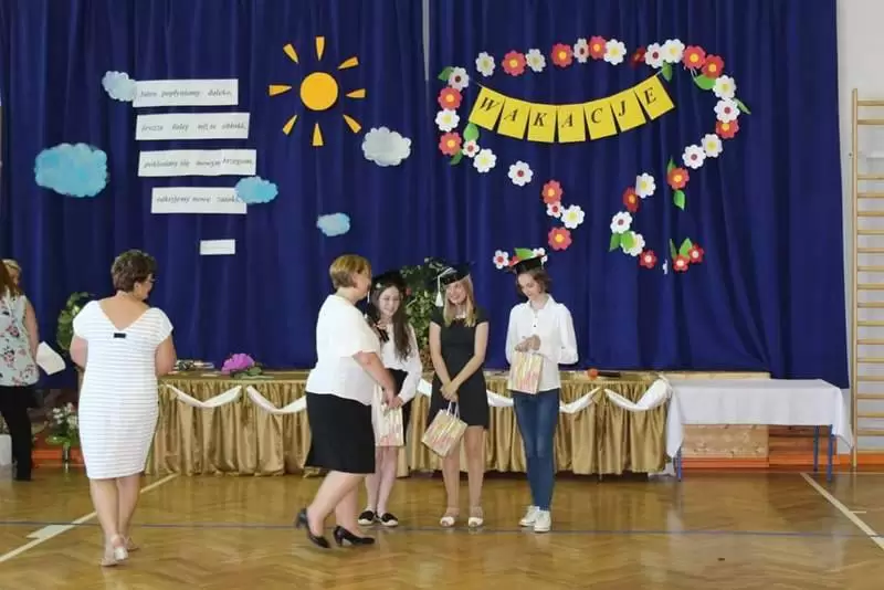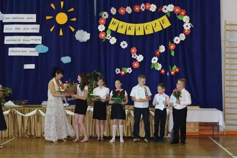 Było to szczególne zakończenie roku, ponieważ po raz pierwszy szkoła podstawowa żegnała uczniów klas ósmych. Rada Rodziców pozyskała od sponsora trzy nagrody rzeczowe, które zostały wręczone uczennicom klasy ósmej za najlepszy wynik egzaminu ósmoklasisty.