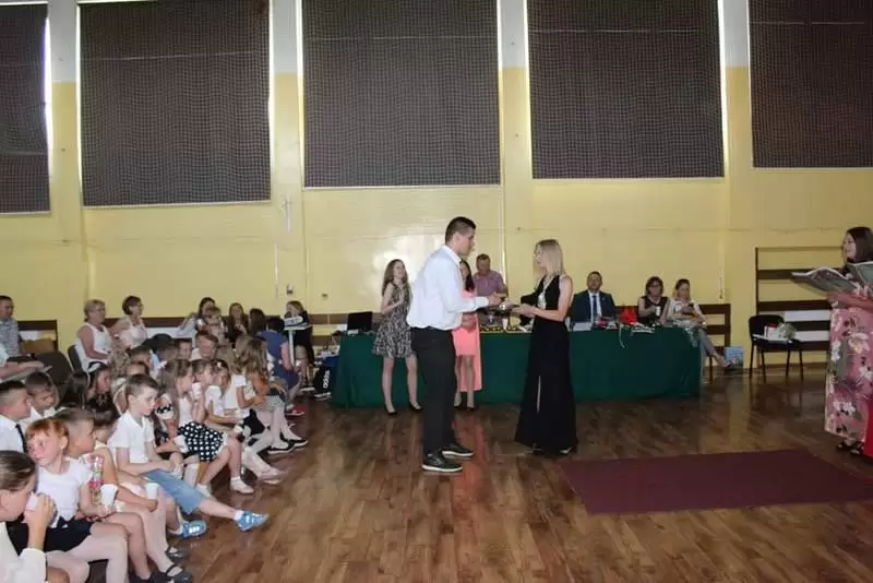 Po tym nastąpił czas wręczania długo wyczekiwanych nagród rzeczowych. Wśród wyróżnionych i osób otrzymujących świadectwa z biało – czerwonym paskiem znalazło się wielu uczniów. Natomiast nagrody rzeczowe – tablet ufundowany przez Wójta Gminy Udanin w szkole podstawowej otrzymali uczniowie: Basta Martyna, Domin Amelia, Czurko Marcelina, Szczur Alicja i Kozłowski Maciej.