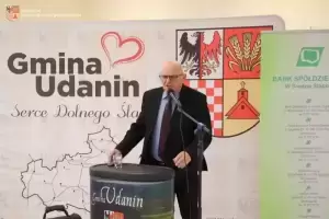 Na początku głos zabrał wójt Gminy Udanin Wojciech Płaziuk, który przywitał gości i serdecznie podziękował za przybycie. W podziękowaniu za współpracę, wiceprezes DIR Waldemar Jankowski wręczył wójtowi statuetkę z okazji 25-lecia istnienia Dolnośląskiej Izby Rolniczej.