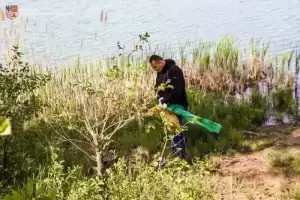 Mieszkańcy i samorządowcy wspólnie posprzątali staw w Ujeździe Górnym