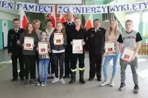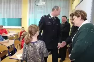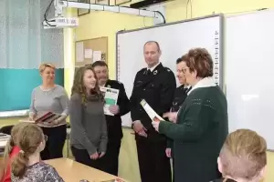 Dyrektor Szkoły Podstawowej w Udaninie, pani Bożena Basa pogratulowała zwycięzcom i wspólnie ze strażakami wręczyła dyplomy oraz nagrody rzeczowe, ponadto każdy z uczestników otrzymał słodki upominek.