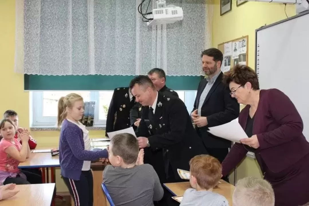 Sekretarz Andrzej Bielski, wraz z dyrektorem Szkoły Podstawowej w Udaninie Bożeną Basa, w imieniu wójta gminy Udanin Wojciecha Płaziuka, pogratulowali zwycięzcom i wspólnie ze strażakami wręczyli dyplomy oraz nagrody rzeczowe. Ponadto każdy z uczestników otrzymał słodki upominek. (Zakup nagród i upominków został sfinansowany z budżetu gminy).