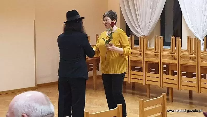 - Witam Państwa ciepło i serdecznie równocześnie dziękując Panu Wójtowi Wojciechowi Płaziukowi oraz Pani kierownik Publicznej Gminnej Biblioteki w Udaninie Ewie Szcześniak za zaproszenie i zorganizowanie dzisiejszego spotkania. Cieszymy się z przebywania w tak dostojnym gronie – witała gości poetka, nauczycielka oraz aktorka Halina Kuśmierz, która towarzyszyła artyście.