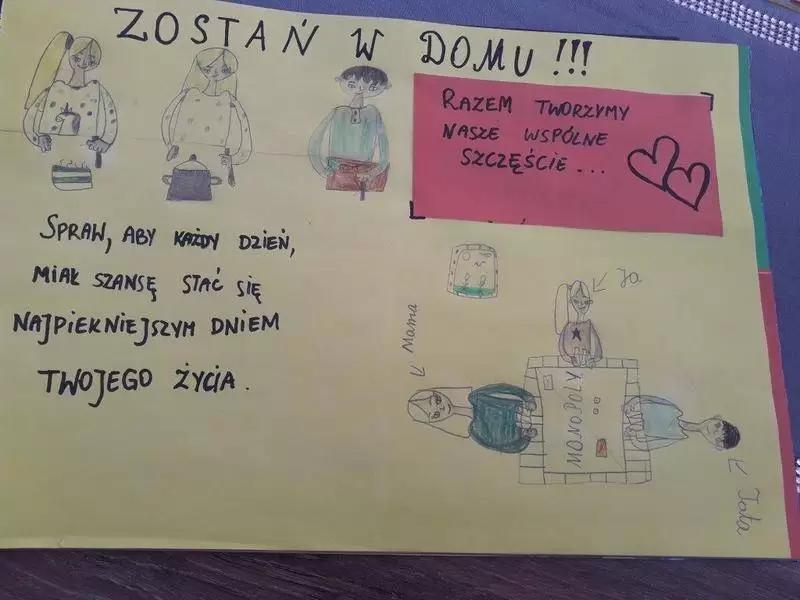 W Szkole Podstawowej im. Adama Mickiewicza w Udaninie odbył się konkurs plastyczny on-line pt. „My się wirusa nie boimy, ponieważ w domu z rodziną siedzimy”.