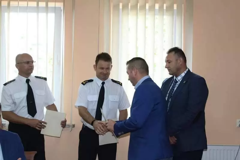 Następnie podziękowania wręczono strażakom za wsparcie i zaangażowanie podczas akcji niesienia pomocy mieszkańcom gminy Udanin, którzy ucierpieli w wyniku gwałtownych i intensywnych opadów deszczu 15 czerwca 2019 r. Podziękowania skierowano do bryg. mgr inż. Marka Wawrejko – komendanta powiatowego PSP w Środzie Śląskiej (podziękowanie odebrał bryg. mgr inż. Tomasz Imielski – zastępca komendanta powiatowego PSP w Środzie Śląskiej), mł. kpt. Wojciecha Lecha zastępcy dowódcy Jednostki Ratowniczo - Gaśniczej w Środzie Śląskiej oraz dla druha Bogdana Wilczaka - prezesa zarządu gminnego Związku Ochotniczych Straży Pożarnych RP w Udaninie.