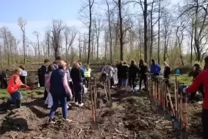W miejsce wyciętych chorych jesionów na terenie ok. 1 ha posadzono ok. 6 tys. drzew liściastych: dębów, lip, wiązów, olch, jaworów oraz drzew owocowych. Nadleśniczy Nadleśnictwa Miękinia Tomasz Międzyrzecki przybliżył zebranym na temat powodu wycinki wcześniej rosnących drzew, które zostały zaatakowane owadami pasożytniczymi, grzybami i grzybami opieńkami – grzybami pasożytniczymi. Jesiony od co najmniej 15 lat zaczęły zamierać w całej Polsce, więc ten problem nie dotyczy tylko lasu na terenie Gminy Udanin.