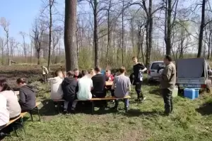 Po ciężkiej pracy dla uczestników przewidziano imienne Certyfikaty oraz zostali zaproszeni na poczęstunek, w ciszy lasu i pięknym słońcu. Wójt bardzo dziękuje Eko Komitetowi Szkolnemu ze Szkoły Podstawowej w Udaninie, który z okazji Tygodnia Ziemi przekazał na jego ręce piękne upominki.