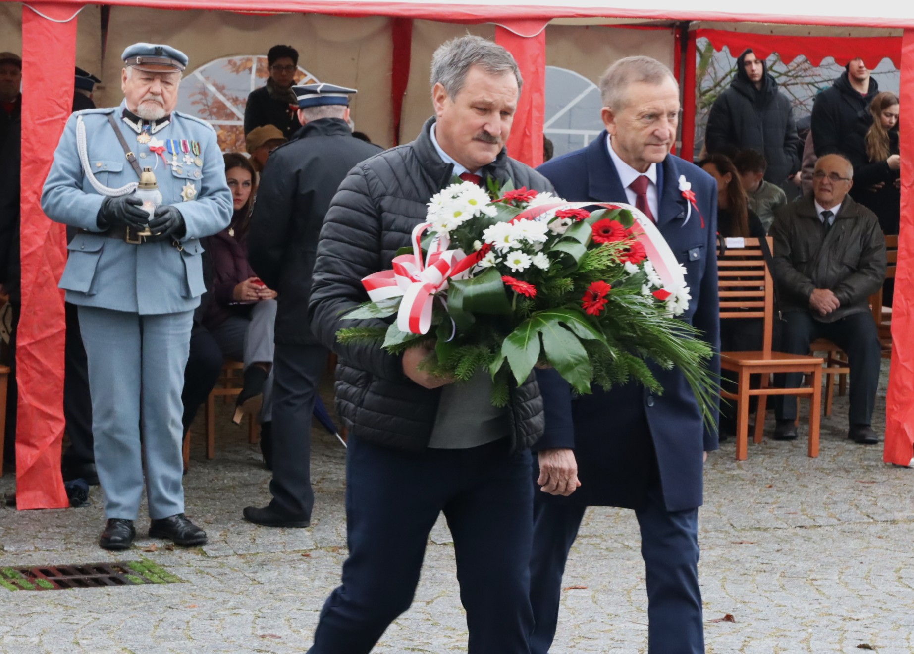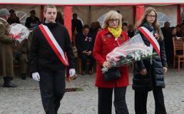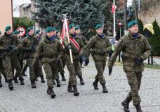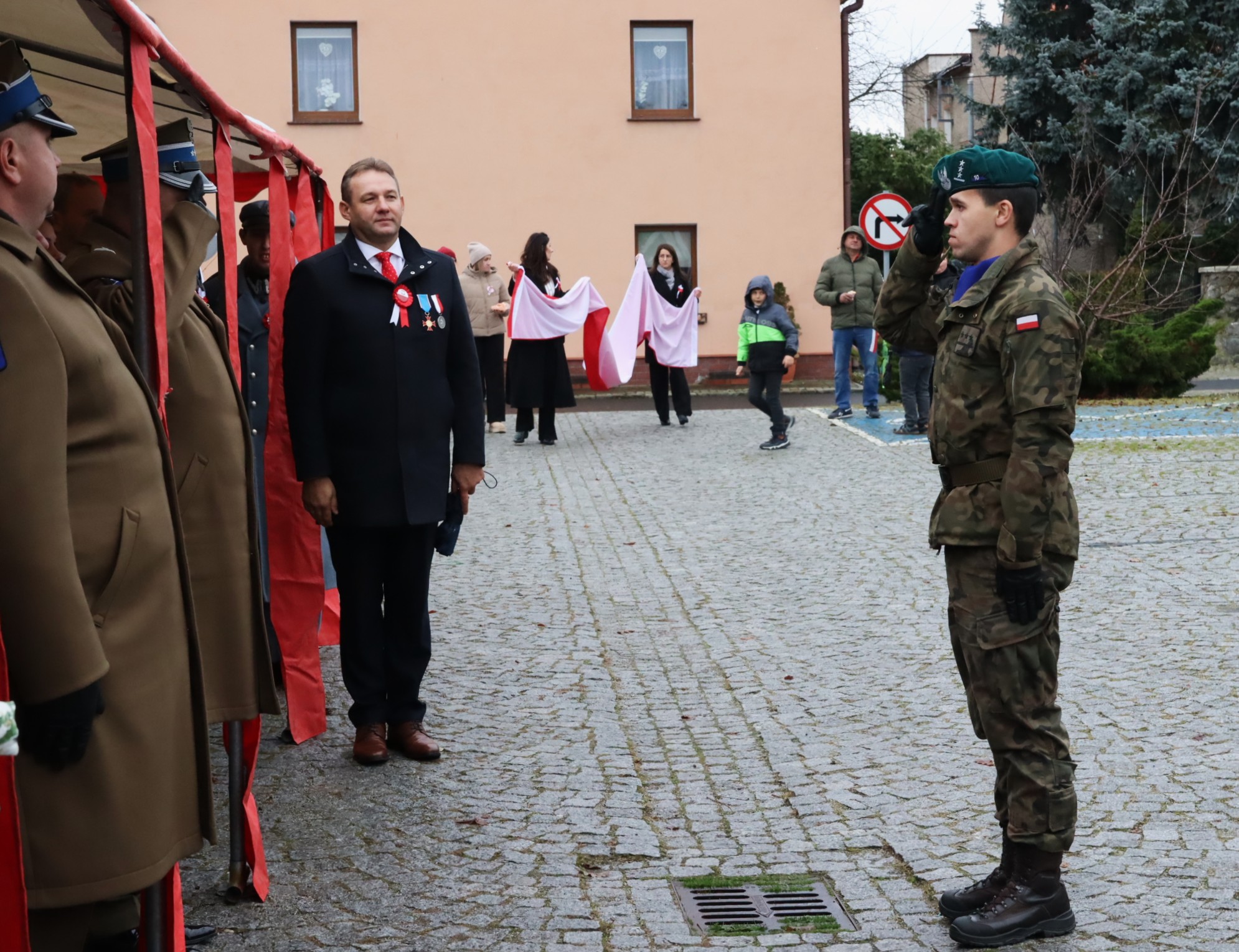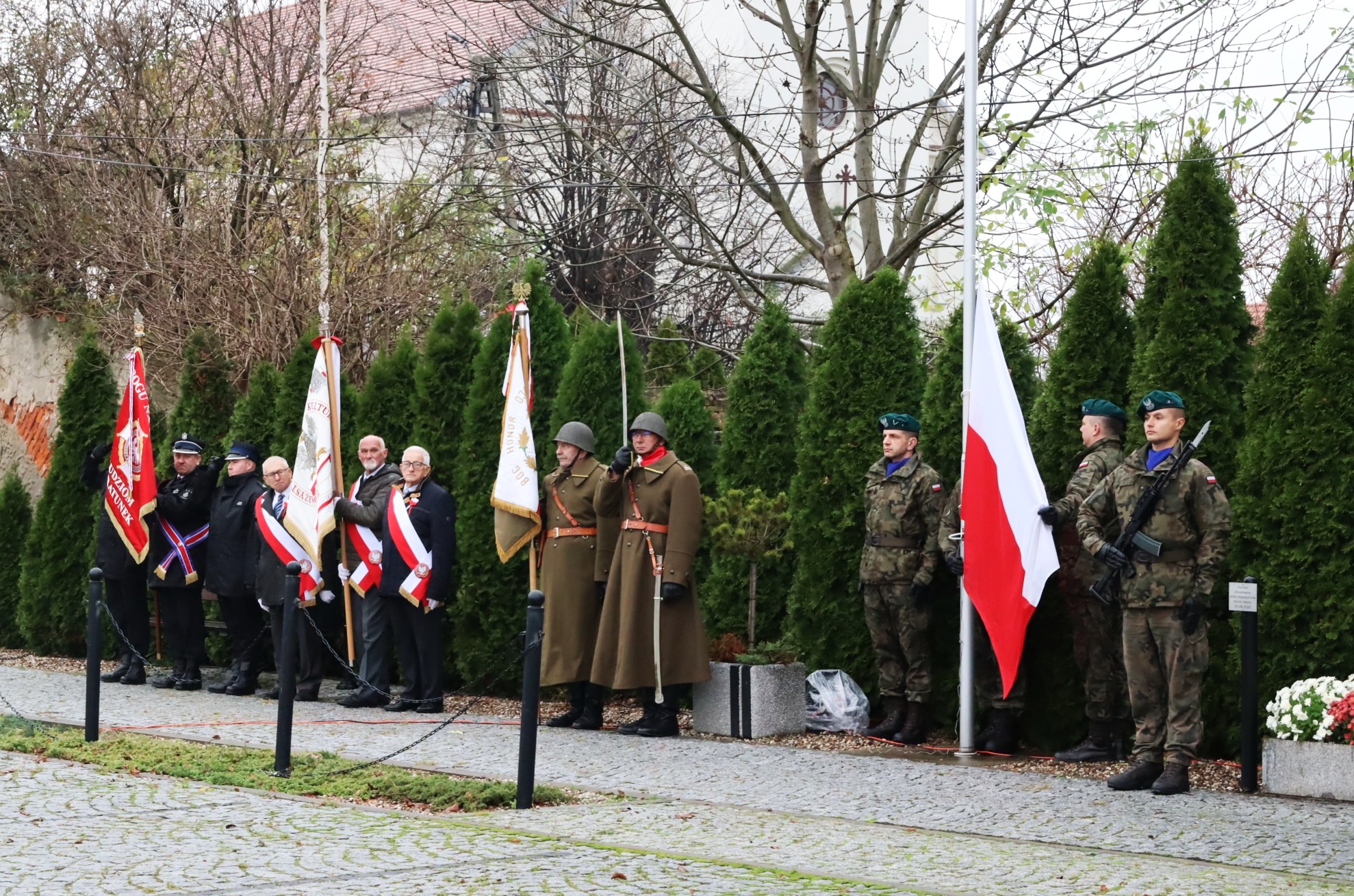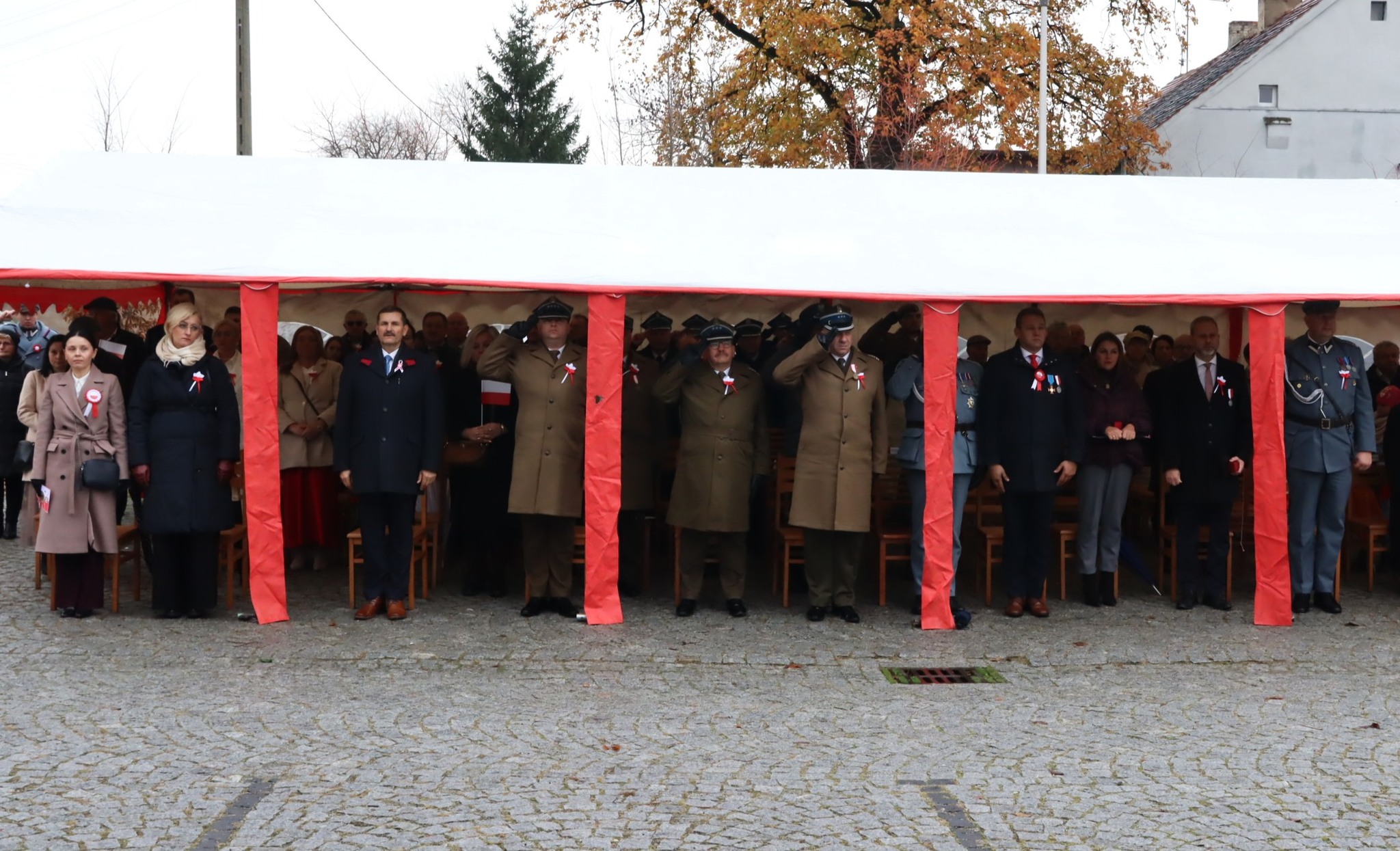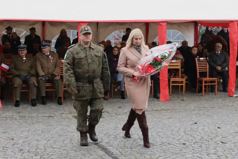 Następnie na Placu Obrońców Ojczyzny odbyła się główna część obchodów. W obecności mieszkańców, żołnierzy, druhów OSP, pocztów sztandarowych i zaproszonych gości uroczyście podniesiono flagę państwową na maszt i wspólnie odśpiewano hymn narodowy.