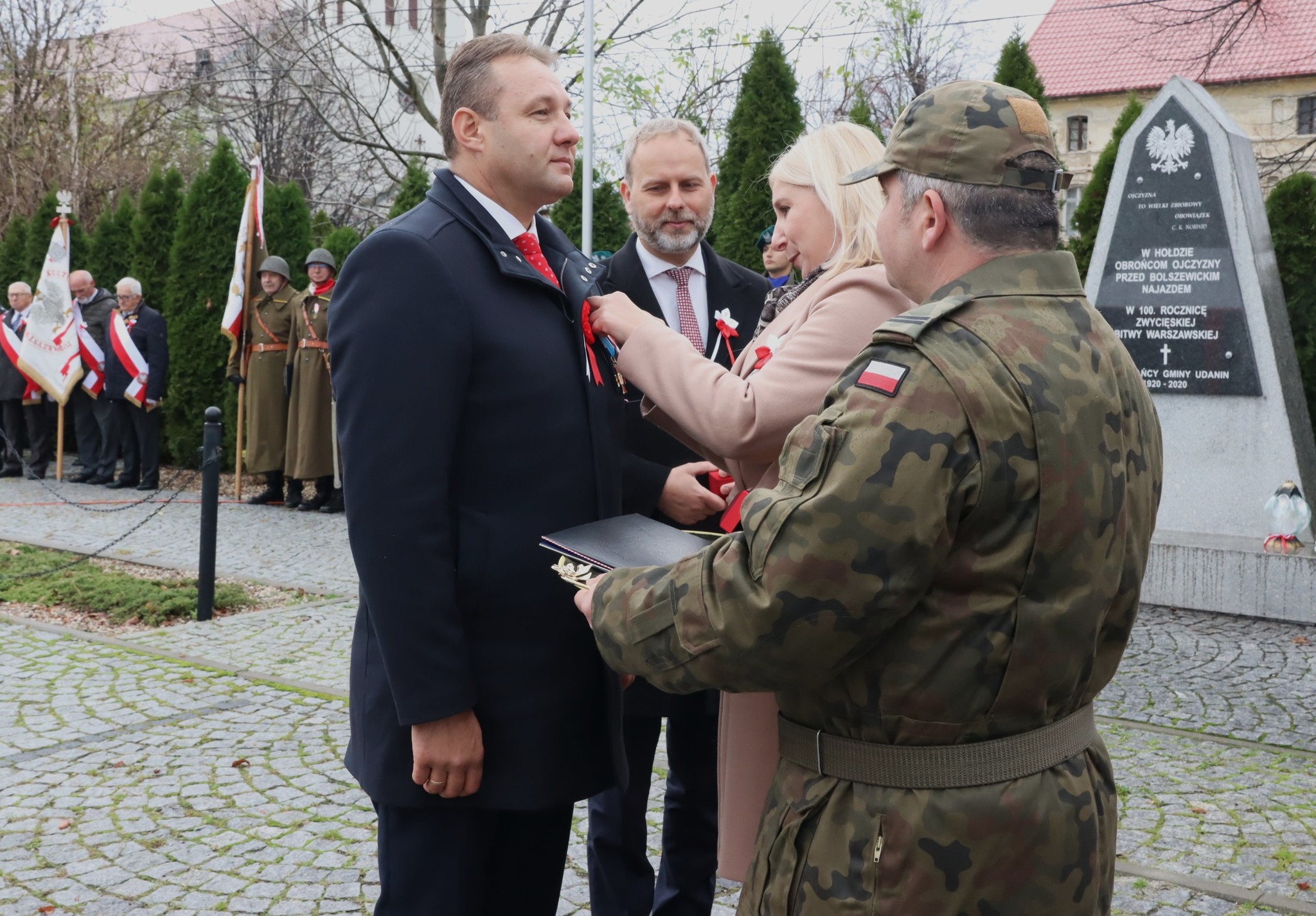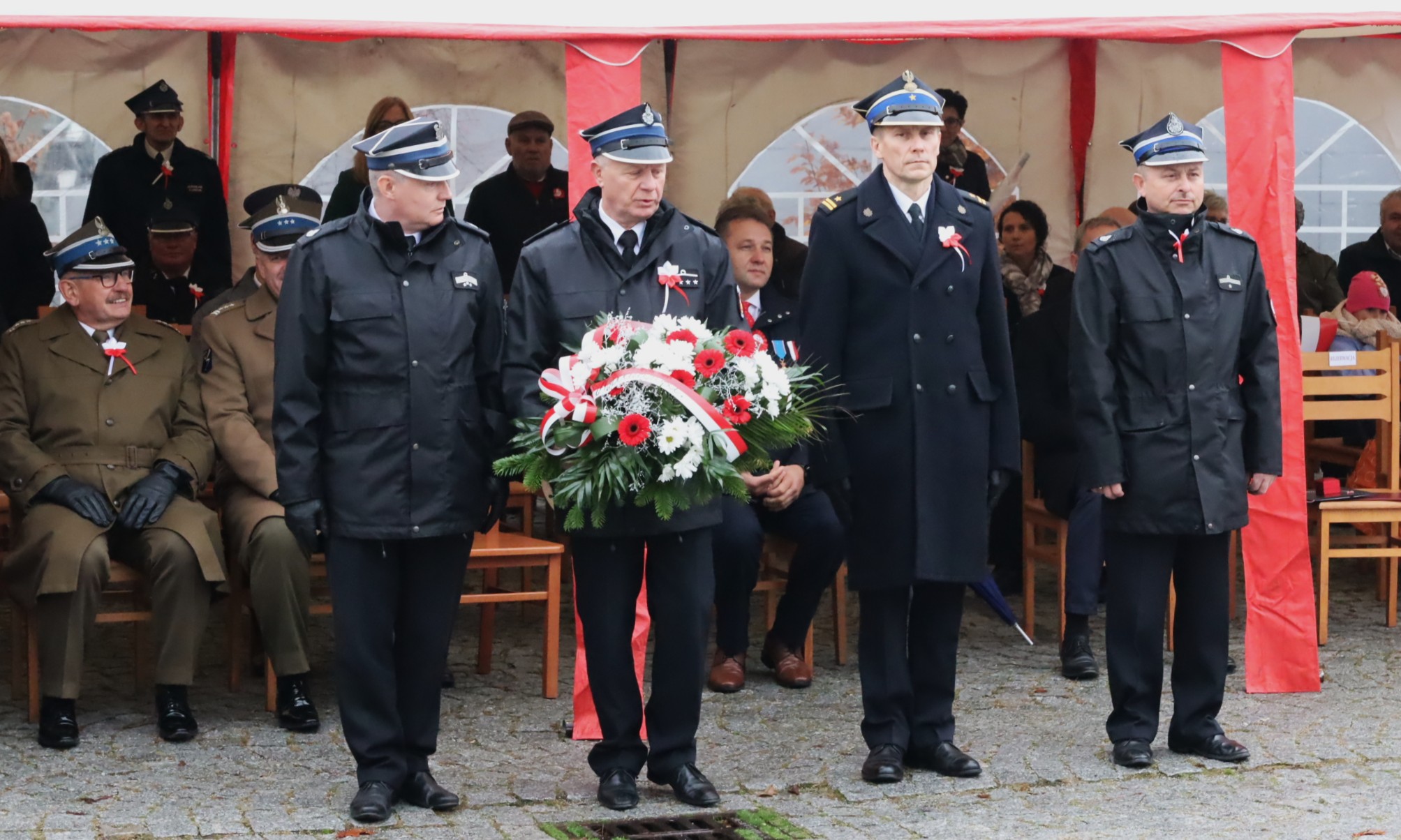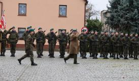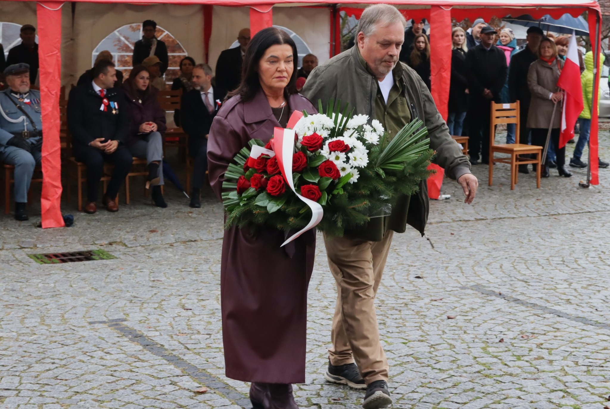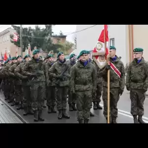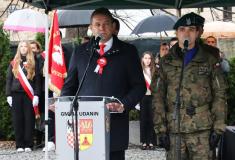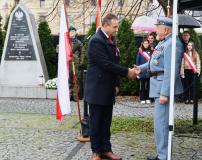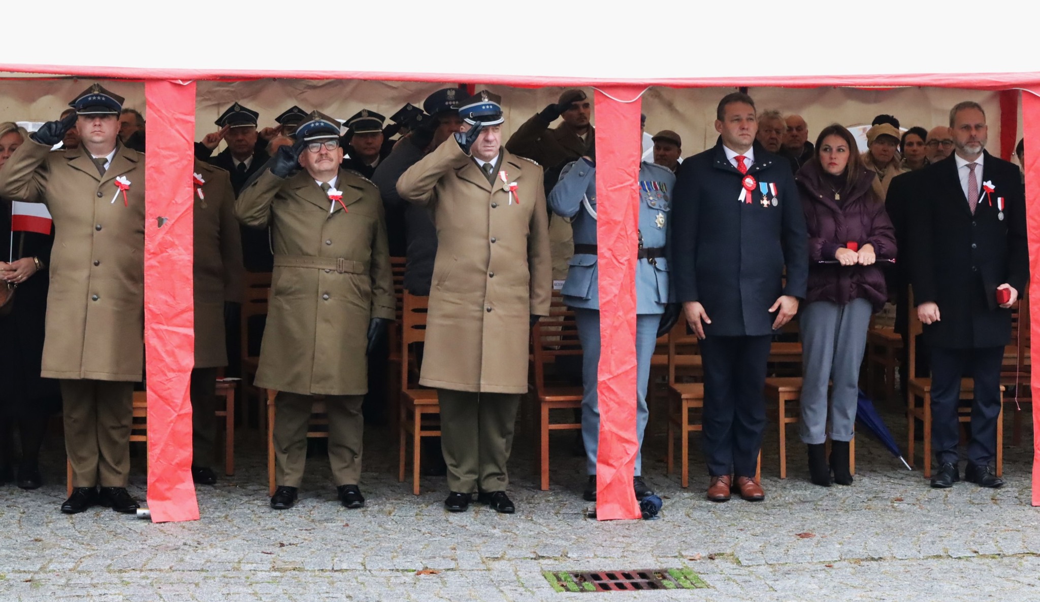 Następnie na Placu Obrońców Ojczyzny odbyła się główna część obchodów. W obecności mieszkańców, żołnierzy, druhów OSP, pocztów sztandarowych i zaproszonych gości uroczyście podniesiono flagę państwową na maszt i wspólnie odśpiewano hymn narodowy.