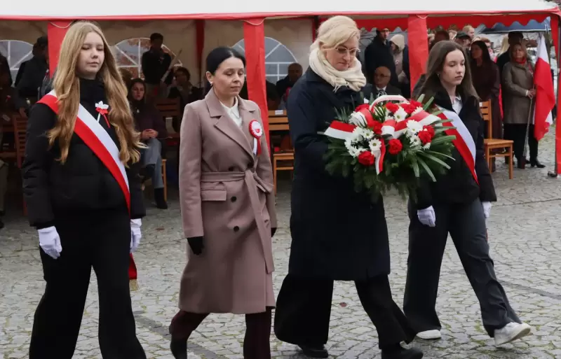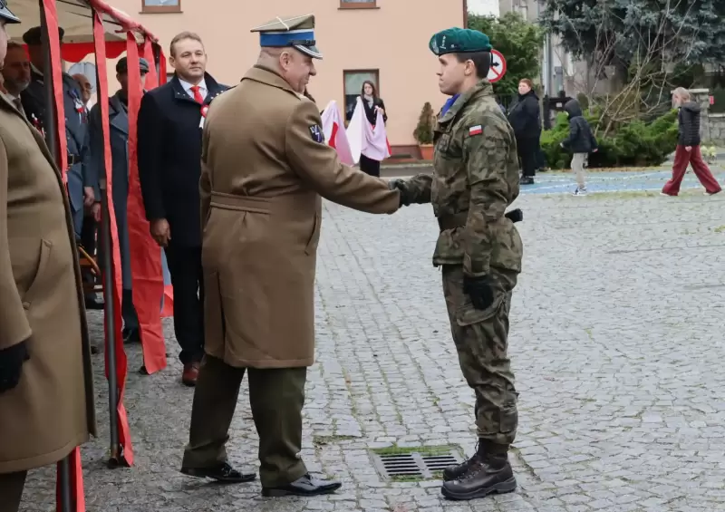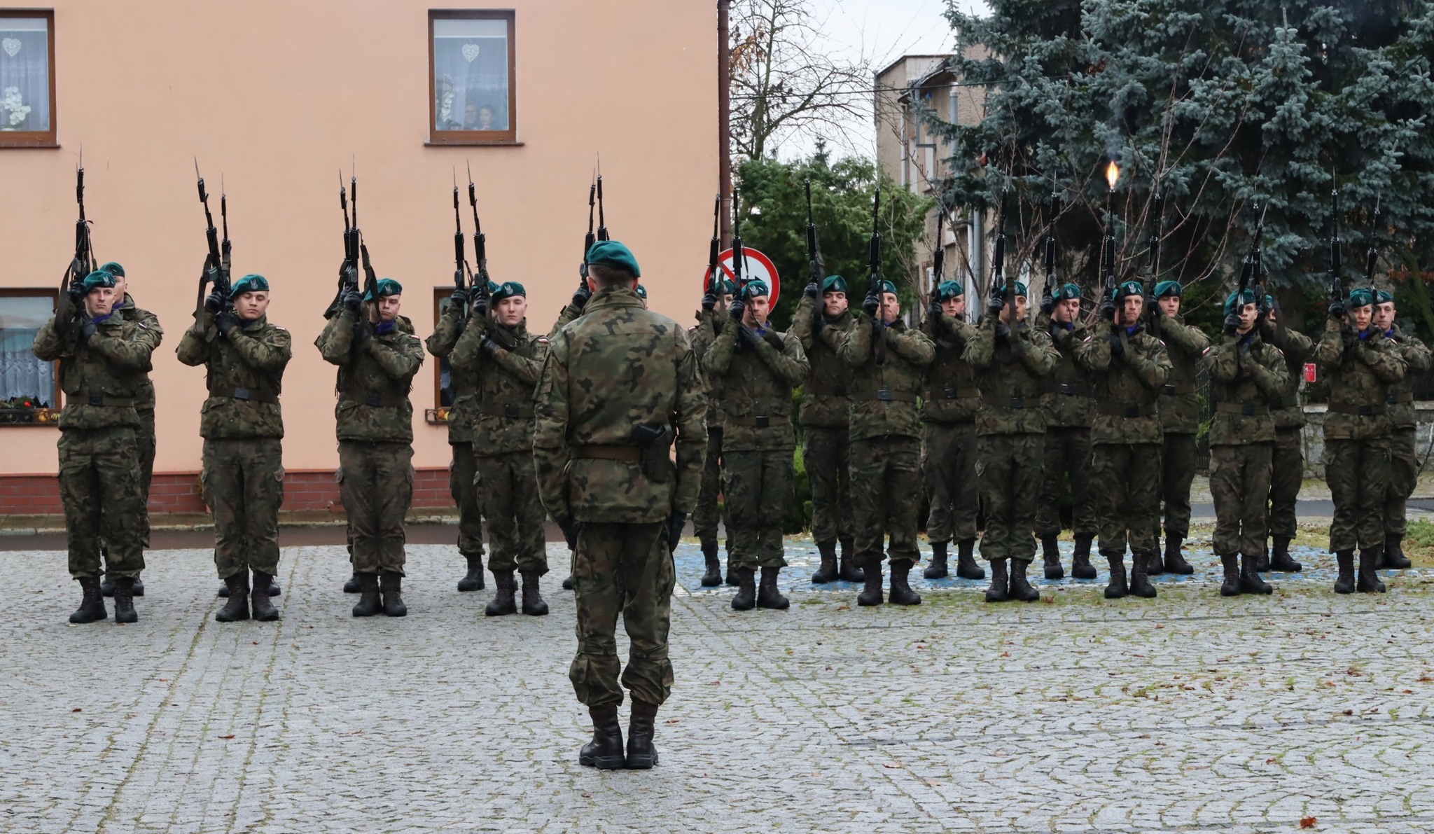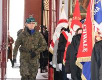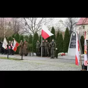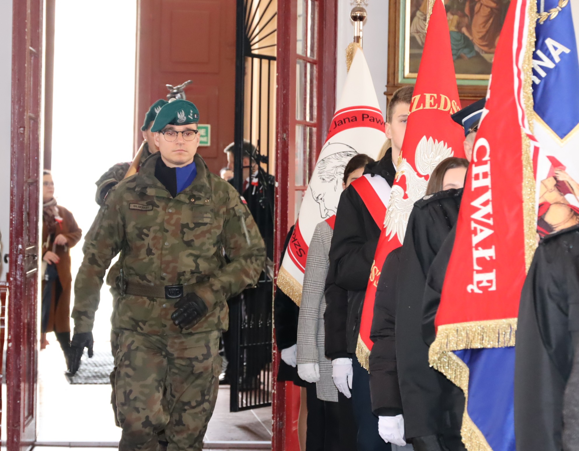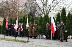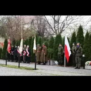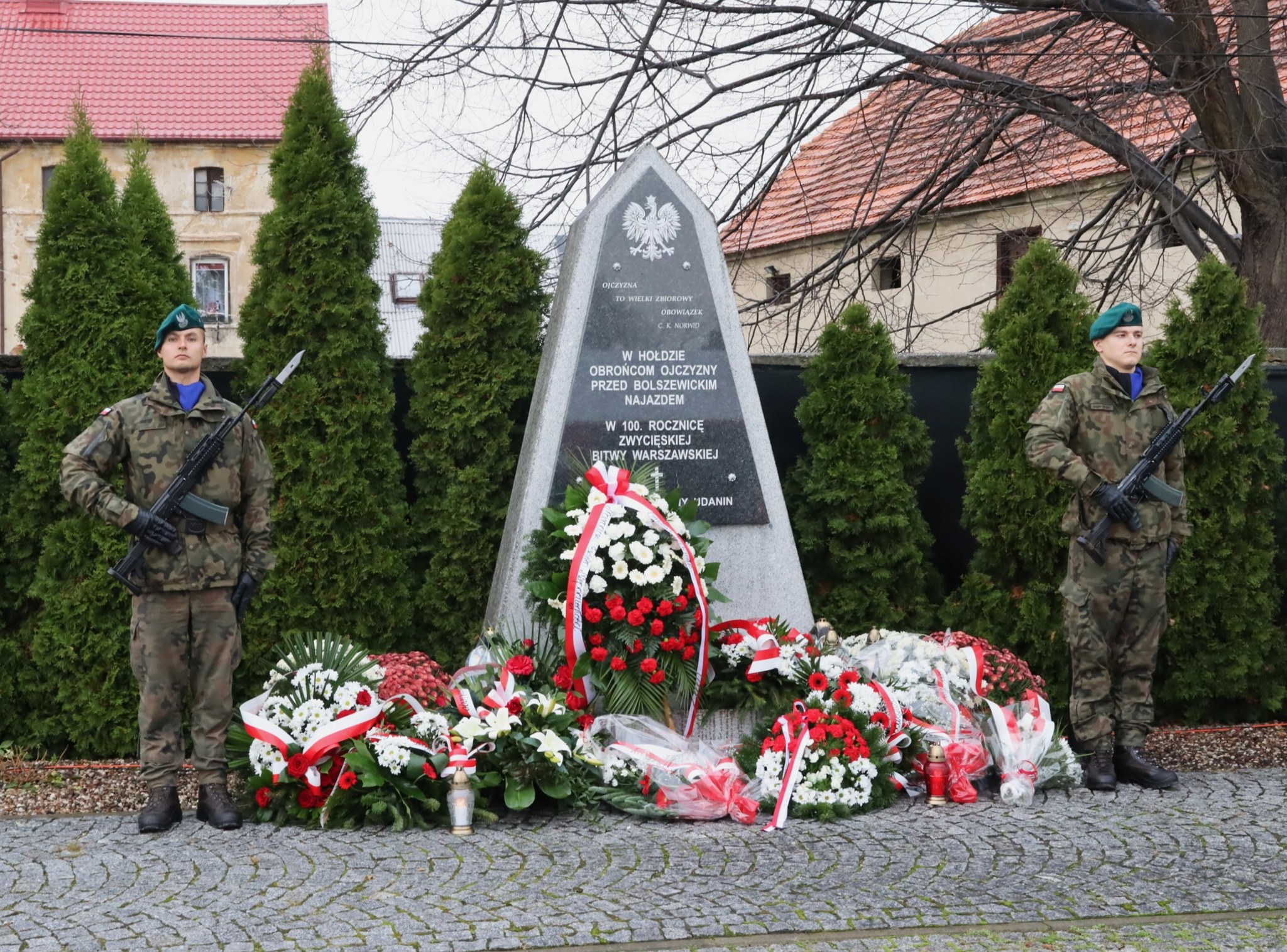 Następnie na Placu Obrońców Ojczyzny odbyła się główna część obchodów. W obecności mieszkańców, żołnierzy, druhów OSP, pocztów sztandarowych i zaproszonych gości uroczyście podniesiono flagę państwową na maszt i wspólnie odśpiewano hymn narodowy.
