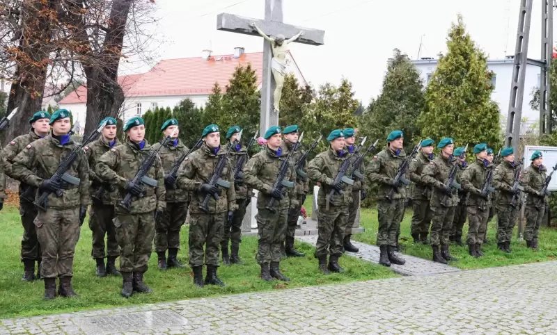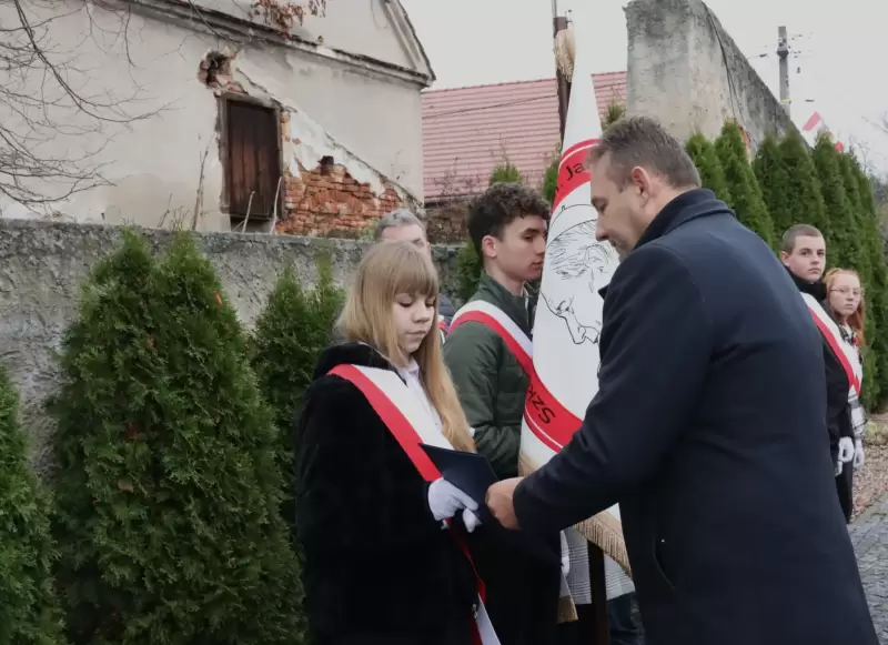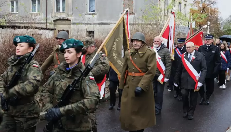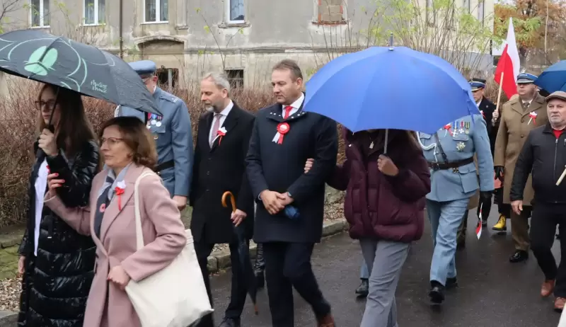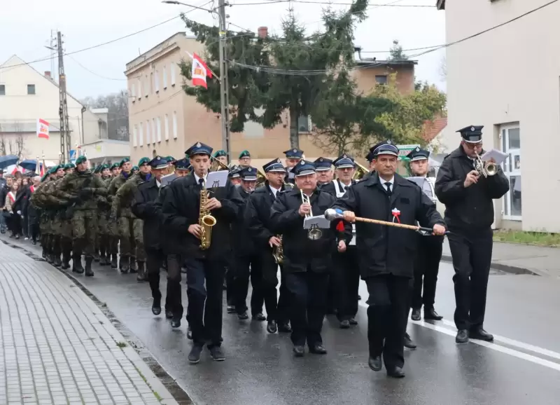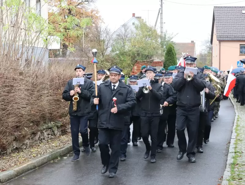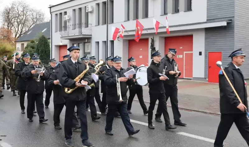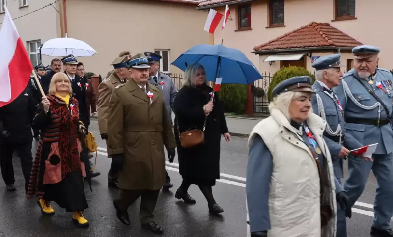 Po nabożeństwie uczestnicy wzięli udział w Pochodzie Niepodległościowym, prowadzonym przez Kompanię Honorową 10 Brygady Łączności oraz Orkiestrę Dętą OSP Domaniów pod batutą kapelmistrza Mirosława Marcisza.