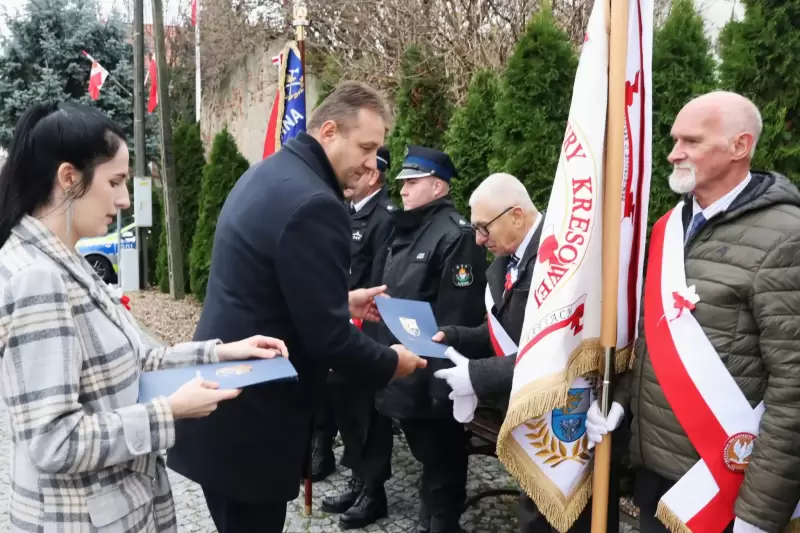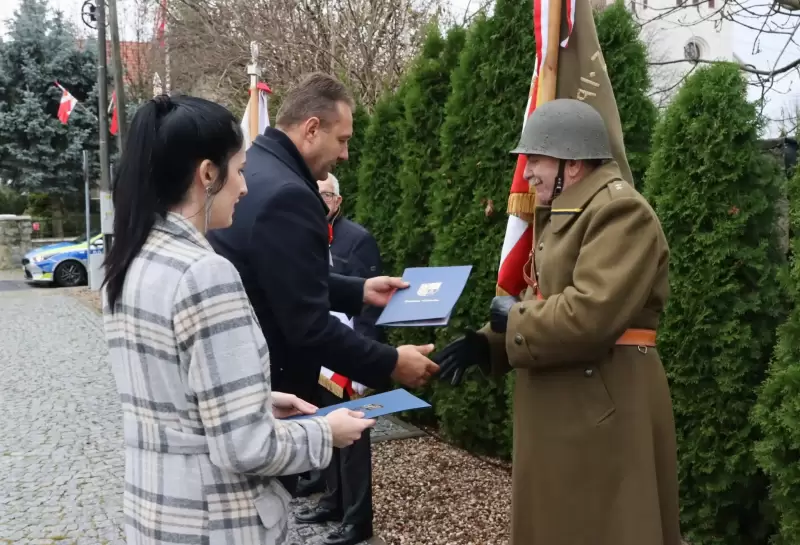 Stowarzyszenie Grupa Rekonstrukcji Historycznej „Pancerni Strzegom”, na wniosek Związku Kombatantów RP i Byłych Więźniów Politycznych Oddział Strzegom, nadało medale pamiątkowe „Gloria Victis” posłowi na Sejm RP Pawłowi Hreniakowi, Wójtowi Wojciechowi Płaziukowi, a także przekazało dyplom z podziękowaniami Sekretarzowi Gminy Andrzejowi Bielskiemu. Uroczystego wręczenia dokonali Ewa Stodolak oraz Grzegorz Szerszeń.
