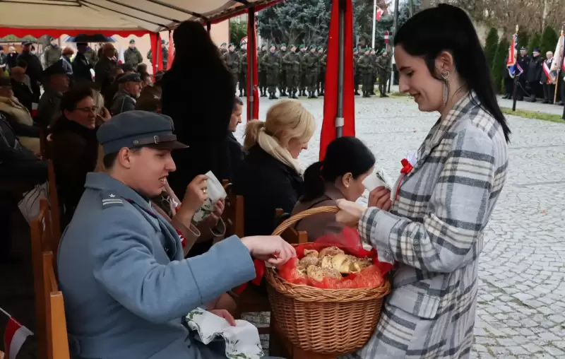 W trakcie uroczystości na placu, dla uczestników, rozdano tradycyjne rogale marcińskie.