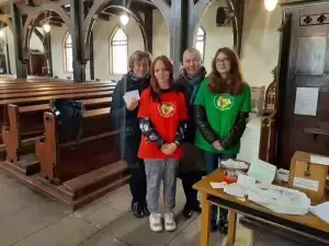 Dzieci należące do ogniska misyjnego w parafii pw. św. Jana Chrzciciela w Piekarach pod opieką pani katechetki z okazji Niedzieli Misyjnej przygotowały akcję „Cukierek i herbatka misyjna”.