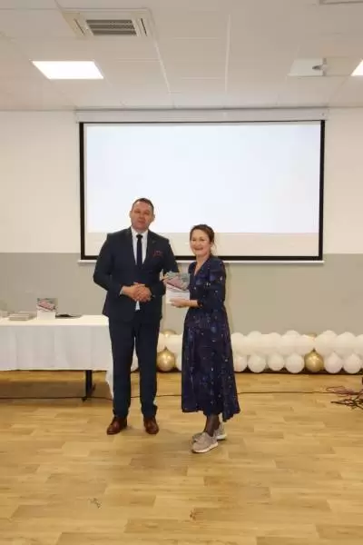 Wójt wręczył podziękowania za wsparcie przy realizacji inwestycji oraz dla osób wchodzących w skład Zespołu ds. realizacji zadania pn. „Budowa Centrum Usług Społeczno- Zdrowotnych w Piekarach”. Następnie wszyscy zainteresowani udali się na spacer po obiekcie i obejrzeli każdy zakamarek centrum będąc pod jego ogromnym wrażeniem. Swoim występem uroczystość uświetnił Zespół Ludowy „Cicha Woda” z Udanina.