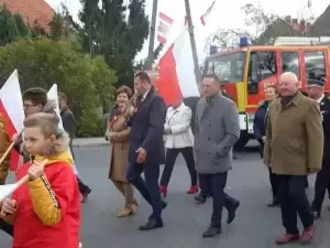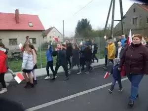 Po części artystycznej nastąpiło złożenie przez delegację Urzędu Gminy i Szkoły Podstawowej kwiatów pod pomnikiem poległych w obronie ojczyzny i patriotyczny marsz „biało – czerwony” ulicami Udanina. Przy dźwiękach żołnierskich piosenek, niosąc narodowe symbole, dzieci radośnie maszerowały, świętując Niepodległość.