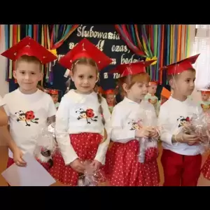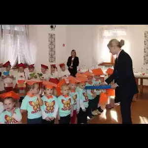 W uroczystości uczestniczył Wójt Gminy Udanin Wojciech Płaziuk, który pogratulował dzieciom i ich wychowawcom, a na pamiątkę tego wyjątkowego dnia wręczył przedszkolakom wspólny prezent.