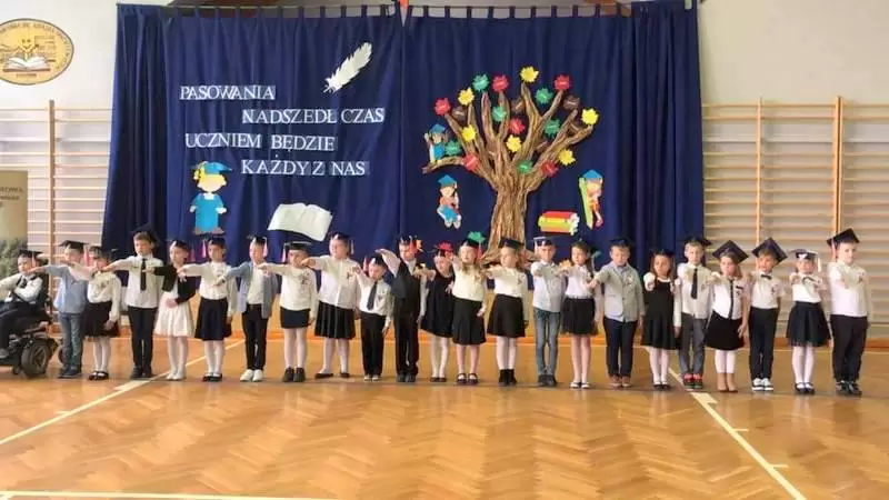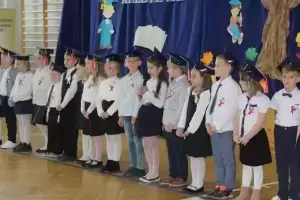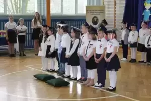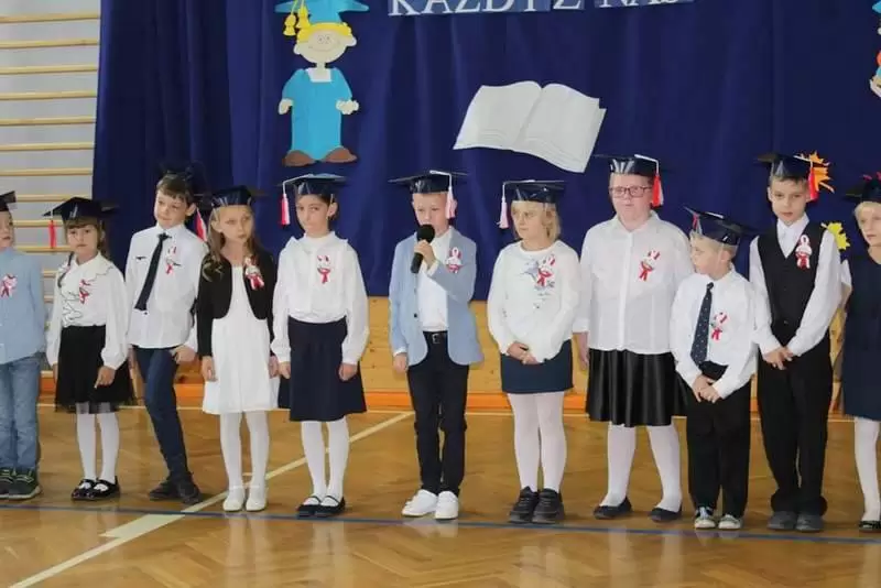 Dzieci z klasy I, pod kierunkiem wychowawczyni pani Lidii Pastuły, przygotowały wspaniałe przedstawienie. Podczas występu uczniowie zaprezentowali swoje talenty: recytatorskie oraz wokalne. Zgodnie z tradycją, musieli wykazać się szeroką wiedzą i umiejętnościami, odpowiadając na pytania zadawane przez starsze koleżanki.