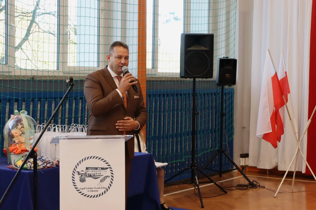 W wydarzeniu udział wziął Wójt Gminy Udanin Wojciech Płaziuk, który złożył uczniom serdeczne gratulacje i życzenia wielu sukcesów w nauce oraz przekazał symboliczne upominki.