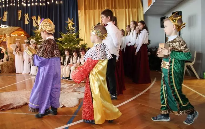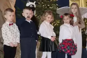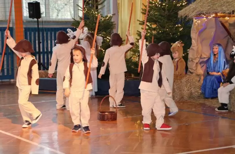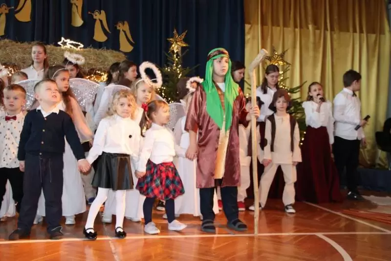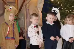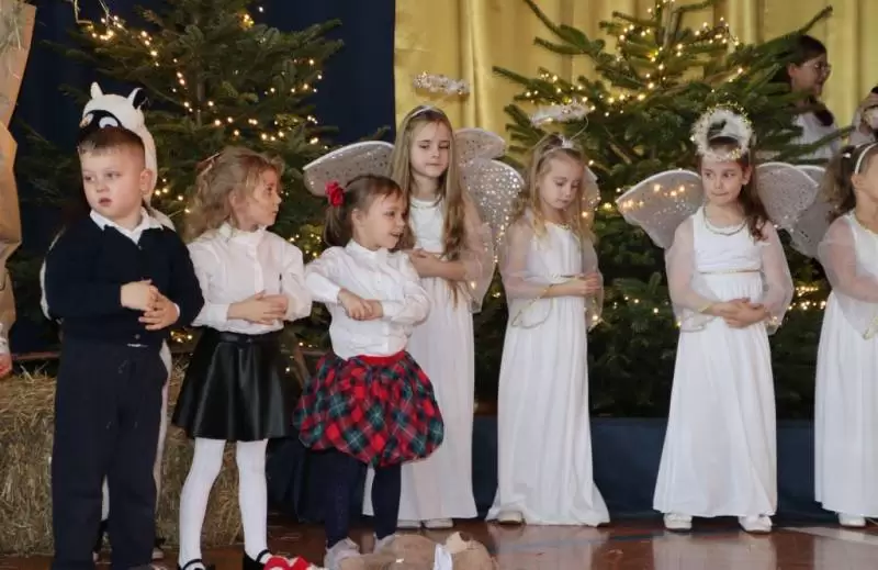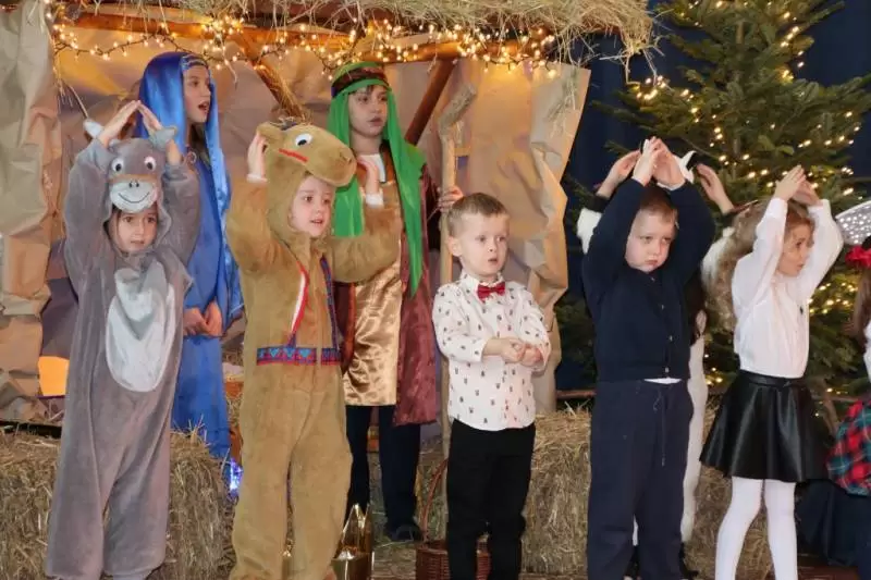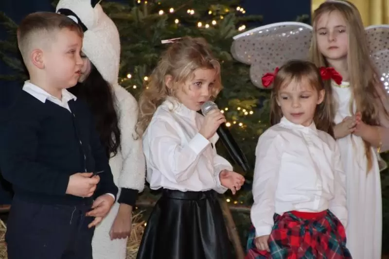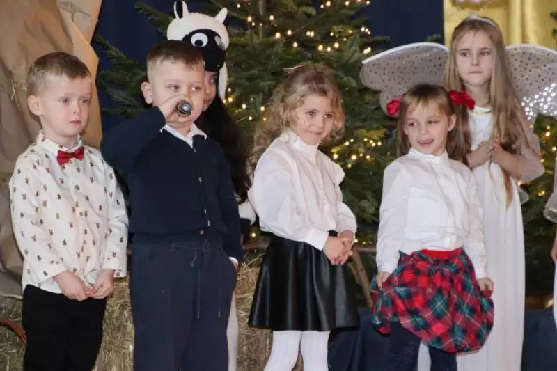 Przedszkolaki oraz uczniowie Zespołu Szkolno-Przedszkolnego wprowadzili zebranych w niezwykły klimat Świąt Bożego Narodzenia, prezentując piękną i wzruszającą opowieść o narodzinach Jezusa.