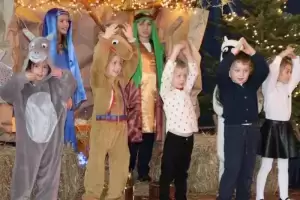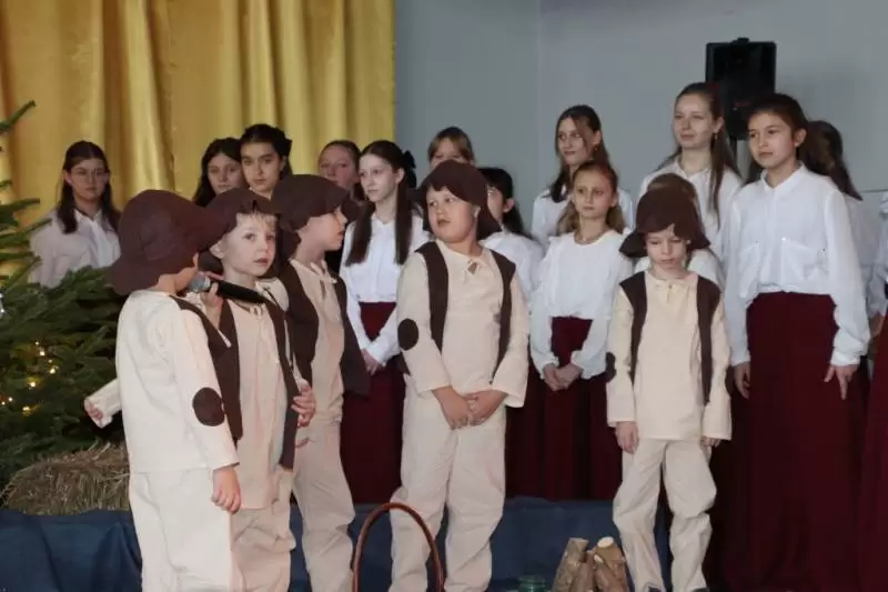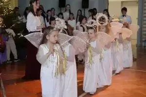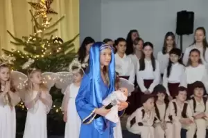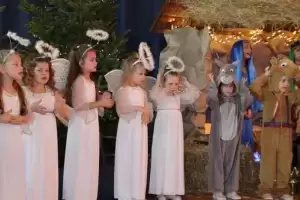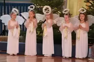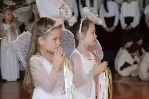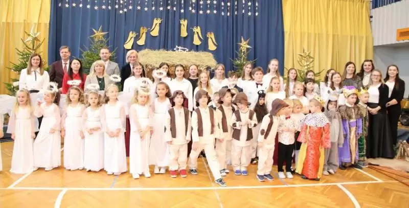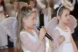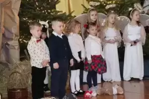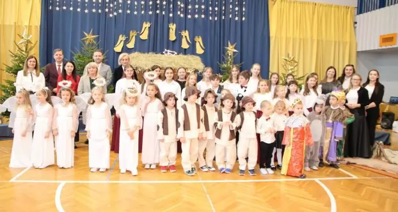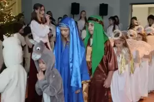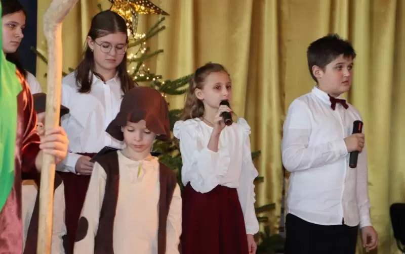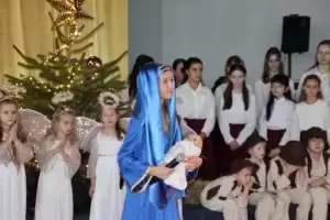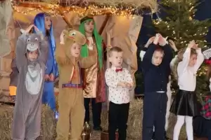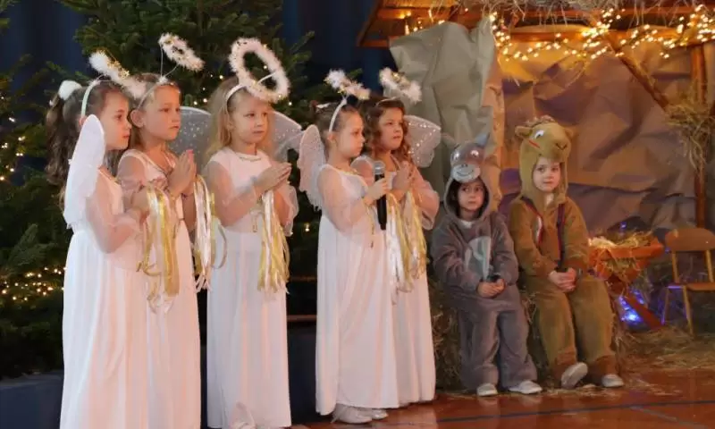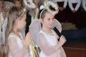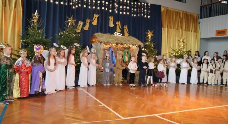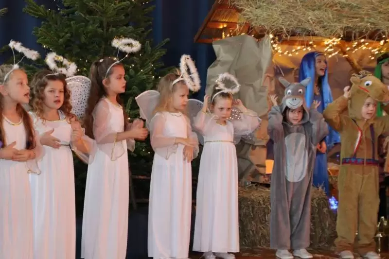 Przedszkolaki oraz uczniowie Zespołu Szkolno-Przedszkolnego wprowadzili zebranych w niezwykły klimat Świąt Bożego Narodzenia, prezentując piękną i wzruszającą opowieść o narodzinach Jezusa.