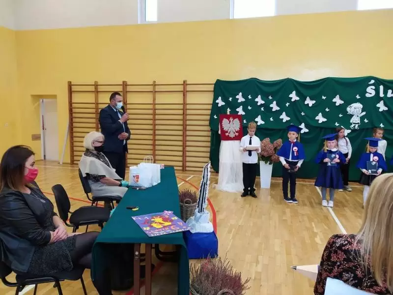 W ceremonii wzięli udział zaproszeni goście: zastępująca panią dyrektor - p. Lucyna Filończyk, wójt gminy Udanin - p. Wojciech Płaziuk, przewodnicząca Rady Rodziców - p. Jolanta Nowak oraz rodzice pierwszoklasistów.