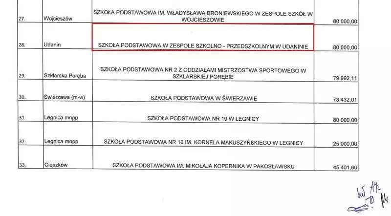 - Oficjalne przekazanie na ręce Dyrektor Pani Bożeny Basa urządzeń o łącznej wartości 62.949,92 zł. W związku z realizacją projektu pn. „Wszechstronna edukacja – klucz do sukcesu w Gminie Udanin” realizowanego w ramach Regionalnego Programu Operacyjnego Województwa Dolnośląskiego na lata 2014-2020 współfinansowanego przez Unię Europejską w ramach Europejskiego Funduszu Społecznego.