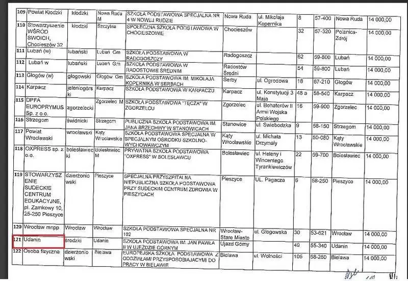 - Przyznanie dofinansowania z Rządowego Programu "Aktywna Tablica" do zrealizowania w Szkole Podstawowej im. Jana Pawła II w Ujeździe Górnym. Wkład własny Gminy Udanin w kwocie 3.500,00 zł, pozyskana dotacja wyniosła 14.000,00 zł.
