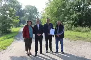 - Odbiór promesy przyznanej w ramach podziału środków na usuwanie skutków klęsk żywiołowych na dofinansowanie w 2019 r. zadania pn. „Przebudowa drogi gminnej nr 107349D, dz. Nr 357, 358, 368, 369, 378 w miejscowości Różana [intensywne opady deszczu, maj 2019 r.]”.