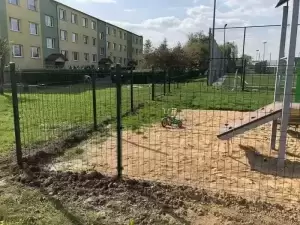 Plac zabaw przy Orliku w Udaninie jest zlokalizowany blisko ulicy, dlatego ogrodzenie tego terenu było priorytetem.
