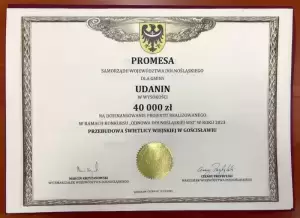 - „Podniesienie bezpieczeństwa drogowego w roku 2023 na terenie Gminy Udanin.” W ramach projektu planuje się zakup i montaż 15 lamp ledowych na osiedlu mieszkaniowym w miejscowości Udanin (12 szt.) i Karnica (3 szt.). Kwota dotacji 107.760,00 zł.