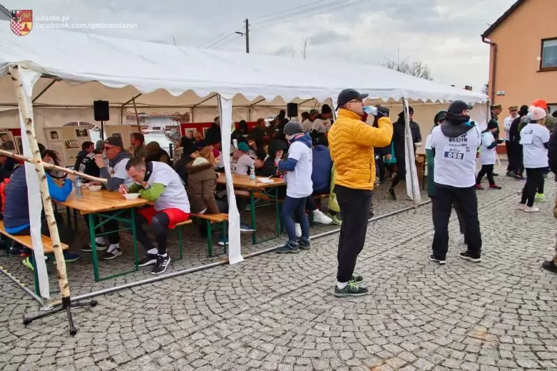Po pokonanym dystansie blisko 2 km zawodnicy mogli posilić się pyszną, ciepłą grochówką oraz uzupełnić kalorie słodką przekąską ufundowaną z budżetu gminy.